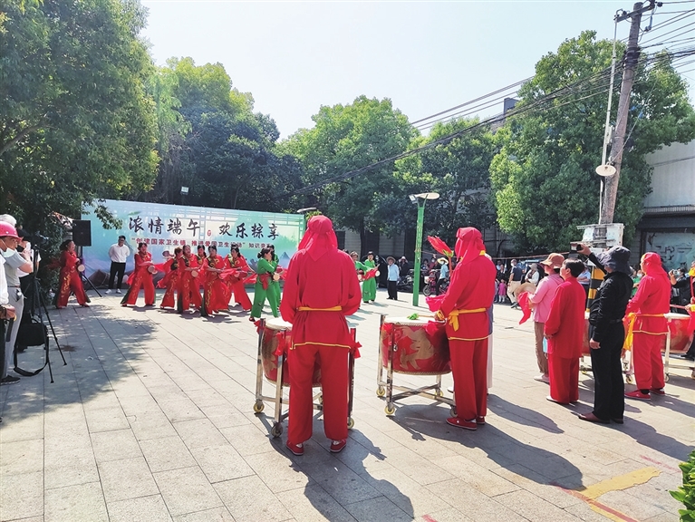 此外,还表演了打腰鼓、太极拳、太极剑、京剧、黄梅戏、舞蹈等文艺节目;穿插开展创建国家卫生镇应知应会知识抢答,并举办“迎端午爱心义卖会”,用义卖所得给现场小朋友送上布香袋和彩绳等特色节日礼品,营造了喜迎端午佳节的欢乐氛围。