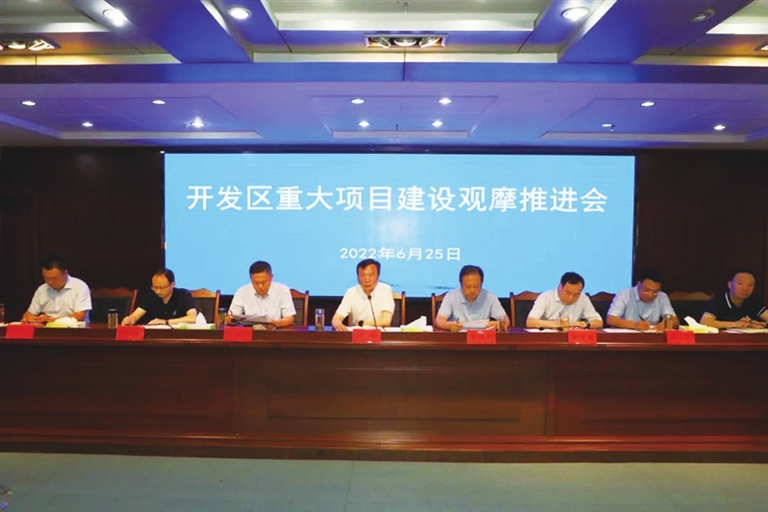会上,开发区党工委委员、管委会副主任、招商局局长李贵军汇报了开发区2022年上半年招商引资签约和重大项目建设情况,并对重大项目挂联负责人考核办法进行了解读;开发区管委会副主任杨大忠就如何更好地服务项目、服务企业等工作提出了具体任务和要求。