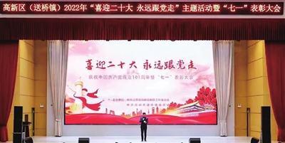 7月1日下午,高新区(送桥镇)2022年“喜迎二十大 永远跟党走”主题活动暨“七一”表彰大会隆重召开。高新区党工委副书记、送桥镇党委书记顾吉林为活动致辞。镇党委副书记、镇长孙定勇宣读表彰决定。