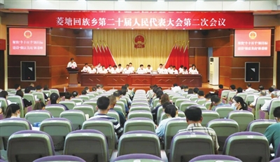 7月8日,菱塘回族乡第二十届人民代表大会第二次会议在庄严的国歌声中隆重开幕。乡党委书记陈烨主持会议。