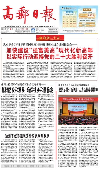 加快建设“强富美高”现代化新高邮 以实际行动迎接党的二十大胜利召开