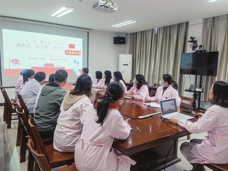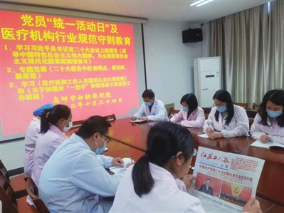 10月24日下午,市妇保院党支部举办“统一活动日”党员集中学习和医疗机构行业规范守则教育。全体党员专题学习党的二十大报告和习近平总书记重要讲话精神。