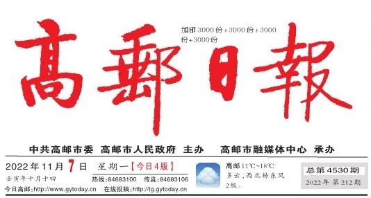 2022年11月7日 壬寅年十月十四 星期一 今日4版 总第4530期 2022年第212期