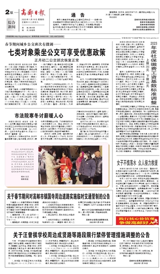 高邮报综合新闻02通告 2023-01-19 2 2023年01月19日 星期四