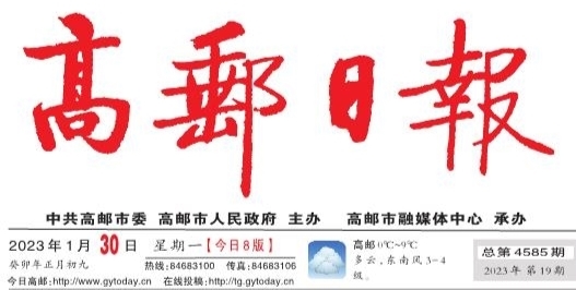 2023年1月30日 癸卯年正月初九 星期一 今日8版 总第4585期 2023年第19期