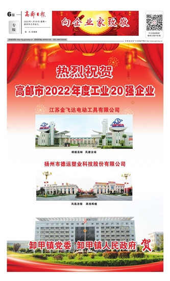 热烈祝贺高邮市2022年度工业20强企业