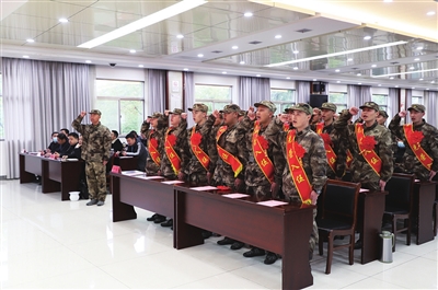 会上,全体新兵进行了入伍前宣誓,新兵代表及新兵家长代表上台表态发言,新兵依次递交了保证书。