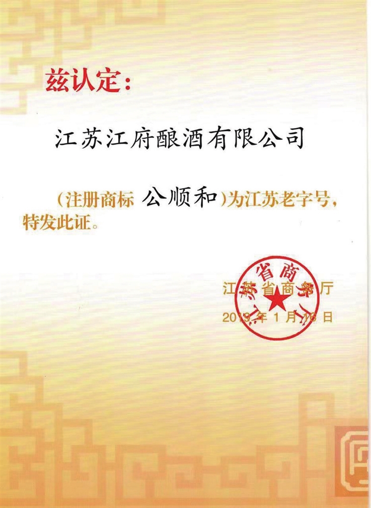 “公顺和”注册商标于2019年1月16日通过了江苏省商务厅第二批“江苏老字号”认定。