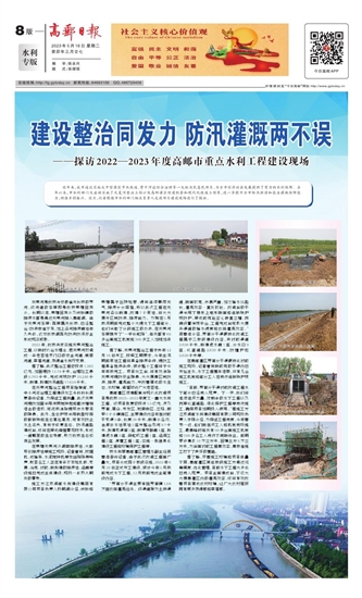 高邮灌区续建配套与现代化改造项目是我市2022-2023年度又一重大水利工程。该项目批复总投资1.5亿元,涉及界首、周山、开发区、城南新区、三垛、卸甲6个乡镇园区,主要建设内容包括衬砌干支渠9条,长度26千米;新建小泾沟、金港补水站泵站2座并整治引河9.7千米、拆建支渠首2座;新建节制闸4座,拆建退水闸3座、倒虹吸工程1座、涵洞工程2座、渡槽工程1座;实施一批信息化建设工程和环境保护工程等。