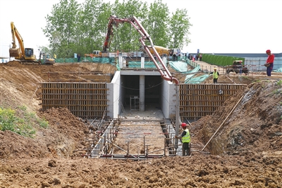 “目前,界首分干渠衬砌改造工程水下部分已经进入尾声。下一步,我们将继续组织力量,对剩余的水下工程以及两岸巡查道路、绿化保护工程等进行施工,确保项目如期投入使用。”据施工方江苏润邮水利建设集团有限公司现场负责人于刚介绍,为保证工程进度,今年春节一过,他们就组织工人和机械进场施工,最高峰时每天有50多台套施工机械和100多名工人进行不间断作业。前期累计清淤18万立方米,回填土方8万立方米,为后面衬砌工程高效率、高标准施工打下了良好的基础。