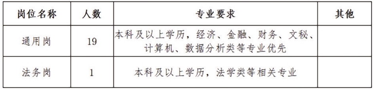本次招聘金融业务类员工20名。具体要求如下: