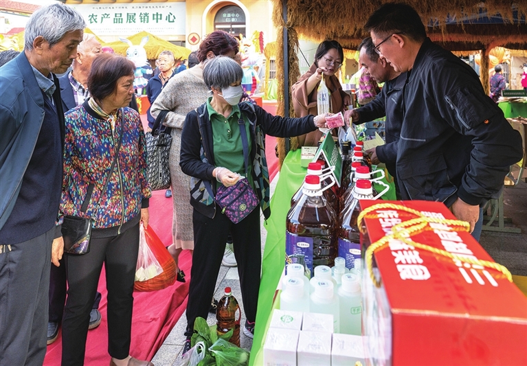 10月27日至29日,市“金秋供销赶集汇”暨特色农产品展销会在农产品展示展销中心成功举办。本次展销会邀请了30多家供销系统优秀会员单位和商家前来参展,既满足了消费者对高质量农产品的需求,也为供销系统会员单位在产品销售、品牌推广、市场开拓等方面开辟新路。据统计,本次展销会线上线下销售额超百万元,现场观展人数在2万人以上。图为展销会现场。