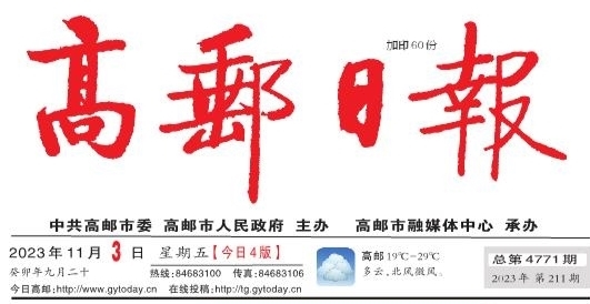 2023年11月3日 癸卯年九月二十 星期五 今日4版 总第4771期 2023年第211期