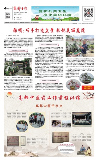 栽种盆景、打造庭院,不仅让小院的风景更美,也增进了邻里间的感情。“很多邻居来我家玩的时候都会被盆景吸引,也想尝试种植盆景,所以我经常会给他们推荐适合新手种植的品种,还会教他们一些种植技巧,有时也会上门帮助他们修剪家里的盆景。”同时,张明还是扬州市盆景协会高邮分会的一员,他经常会与协会的其他成员在微信群里交流心得,到盆友家参观,交流种植经验,和盆友结伴到外地参观盆景展览。