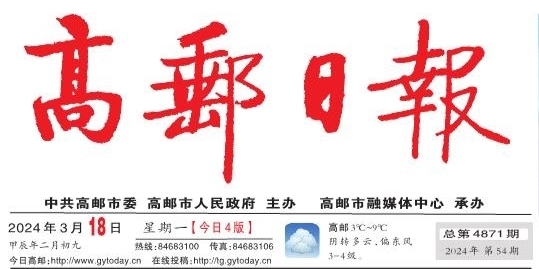 2024年3月18日 甲辰年二月初九 星期一 今日4版 总第4871期 2024年第54期