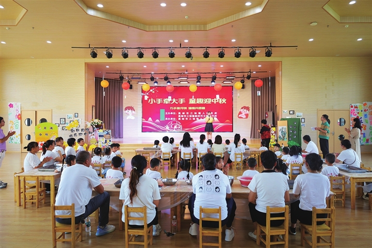 为让幼儿园小朋友深入了解中国传统节日的文化内涵,增进亲子沟通,9月14日下午,三垛镇人民政府、三垛镇新时代文明实践所联合三垛幼儿园开展主题为“巧手做月饼,温情共团圆”的亲子活动。