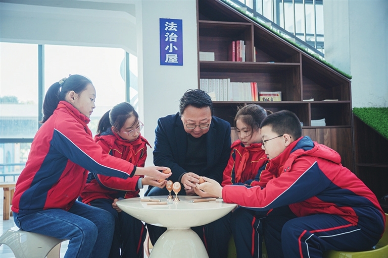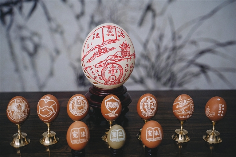 近日,市司法局深入挖掘法治深邃内涵,将法治宣传与非遗文化巧妙结合,邀请我市蛋雕大师李峥嵘,一同走进校园为学生们授课。活动现场,李峥嵘以蛋为纸,以刀为笔,悉心教授学生们蛋雕技艺,让学生们在体验传统非遗文化魅力的同时,接受法治文化的熏陶。图为活动现场。 李维 东方 摄影报道