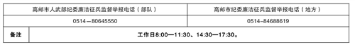 附件:1.高邮市廉洁征兵监督举报电话