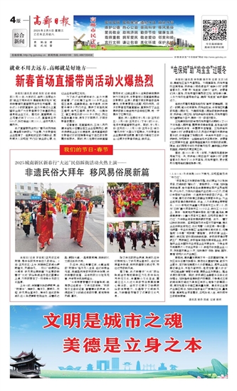 本报讯(记者 罗政乾)正月初五迎财神,是中华民族传承已久的年俗。2日(正月初五)上午,城南新区的街头锣鼓喧天,热闹非凡。一场以“非遗民俗大拜年 移风易俗展新篇”为主题的新春行“大运”民俗踩街活动在这里精彩上演,为市民带来了一场年味十足的文化盛宴。