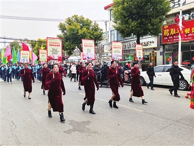上午9时,伴随着欢快的锣鼓声,由“财神爷”、旗帜队、舞龙队、腰鼓队、花船、移风易俗宣传队、旗手队组成的踩街队伍从车逻镇敬老院出发,沿着迅达路、朝阳大道,一路载歌载舞,向新时代文明实践所行进。