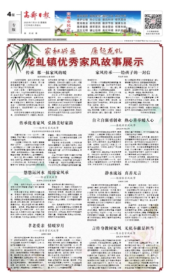 言传身教树家风 无私奉献显担当