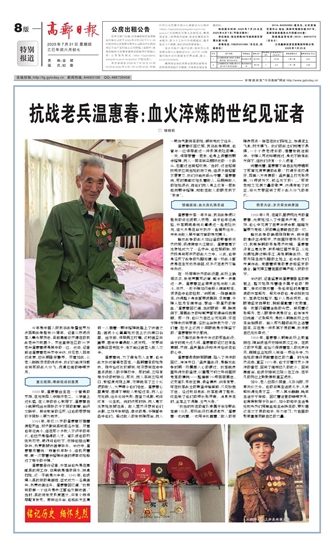 抗战老兵温惠春:血火淬炼的世纪见证者