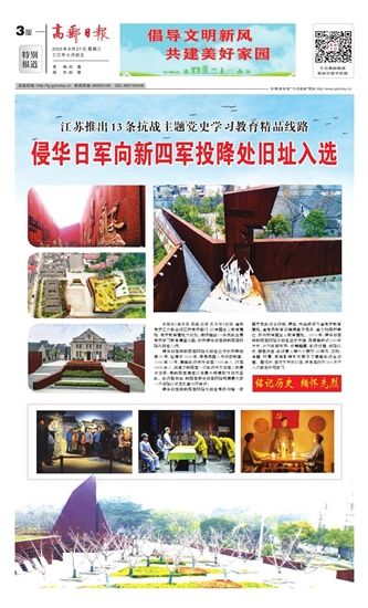 江苏推出13条抗战主题党史学习教育精品线路~~~