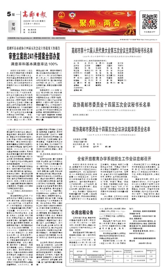~~~(2026年1月13日高邮市第十六届人民代表大会第五次会议预备会议通过)