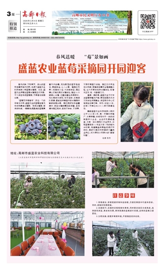 盛蓝农业蓝莓采摘园开园迎客