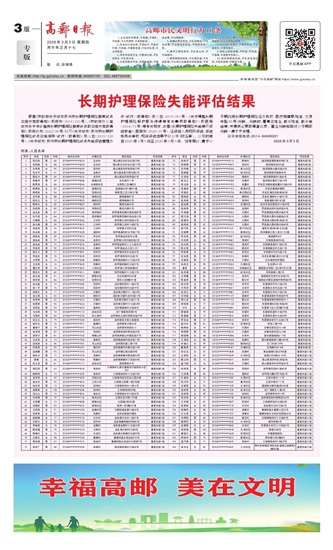 根据《市政府关于印发扬州市长期护理保险制度试点实施方案的通知》(扬府发〔2018〕192号)、《市政府办公室印发关于深化推进长期护理保险制度试点的实施方案的通知》(扬府办发〔2022〕98号)以及《关于印发(扬州市长期护理保险试点实施细则(试行))的通知》(扬人社〔2018〕328号)、《关于印发(扬州市长期护理保险试点失能评估管理办法(试行))的通知》(扬人社〔2018〕351号)、《关于调整长期护理保险照护服务待遇等有关事项的通知》(扬医保〔2024〕73号)等有关规定,依据《长期护理保险失能等级评估标准》(医保发〔2020〕37号),经评估人员现场评估,评估委员会审核,现将评估结果予以公示(附名单)。公示时间自2026年3月5日至2026年3月9日。如有异议,请于公示期内向长期护理保险经办机构:医疗保障局(地址:文游中路88号)反映。反映时,署真实姓名、联系地址、联系电话等,并提供必要的调查线索。匿名反映和超过公示期的反映一律不予受理。