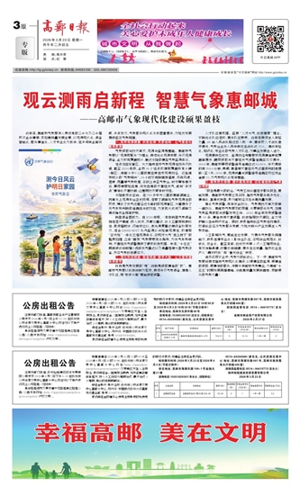 “民生是最大的政治。”气象工作价值在于服务民生、赋能发展。高邮市气象局立足实际,推动气象服务向多元化、精细化、直通式转型,助力邮城经济社会高质量发展。