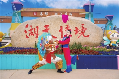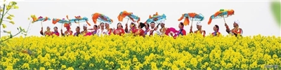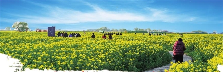 高邮湖上花海作为“江苏十大赏花胜地”之一,目前已正式开园,迎来盛花期。2600亩油菜花与烟波浩渺的高邮湖交相辉映,一幅水乡独有的春日画卷正徐徐展开,吸引了八方游客和嘉宾前来观光,共同品味花海漫卷的诗意、品读水乡文化的悠长。