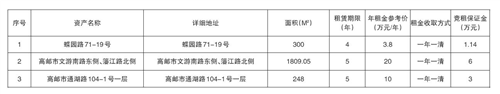 经有关部门批准,高邮市邮业资产经营有限公司定于2026年5月7日上午10:00 在扬州市公共资源交易中心高邮分中心网站对以下房产进行网上公开招租:(见附件)具体招租细节及要求请参见招租单位招租公告(公告发布网址:http://ggzyjyzx.yangzhou.gov.cn/gyfzx/ 产权交易)。