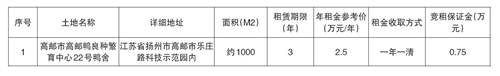 有意者请在2026年4月21日10时00分至2026年5月7日16时30分,在扬州市公共资源交易中心高邮分中心网站(http://ggzyjyzx.yangzhou.gov.cn/gyfzx/)交易响应方登入注册报名,缴纳保证金。(挂牌报名期满,如未征集到意向承租方,按 5个工作日为周期延迟,最多延迟 2个周期,竞价时间同期顺延)。